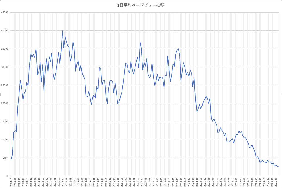 2008/11〜2025/11 の当サイト訪問者数(PV)・推移