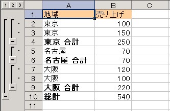 [データメニュー(D)]→[集計(B)]を選択して、[OK]ボタンを押すと ↓のようになります。