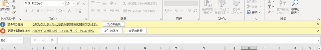 回線状況等により、ファイルを開いた際、稀に「変更の破棄」ボタンが表示